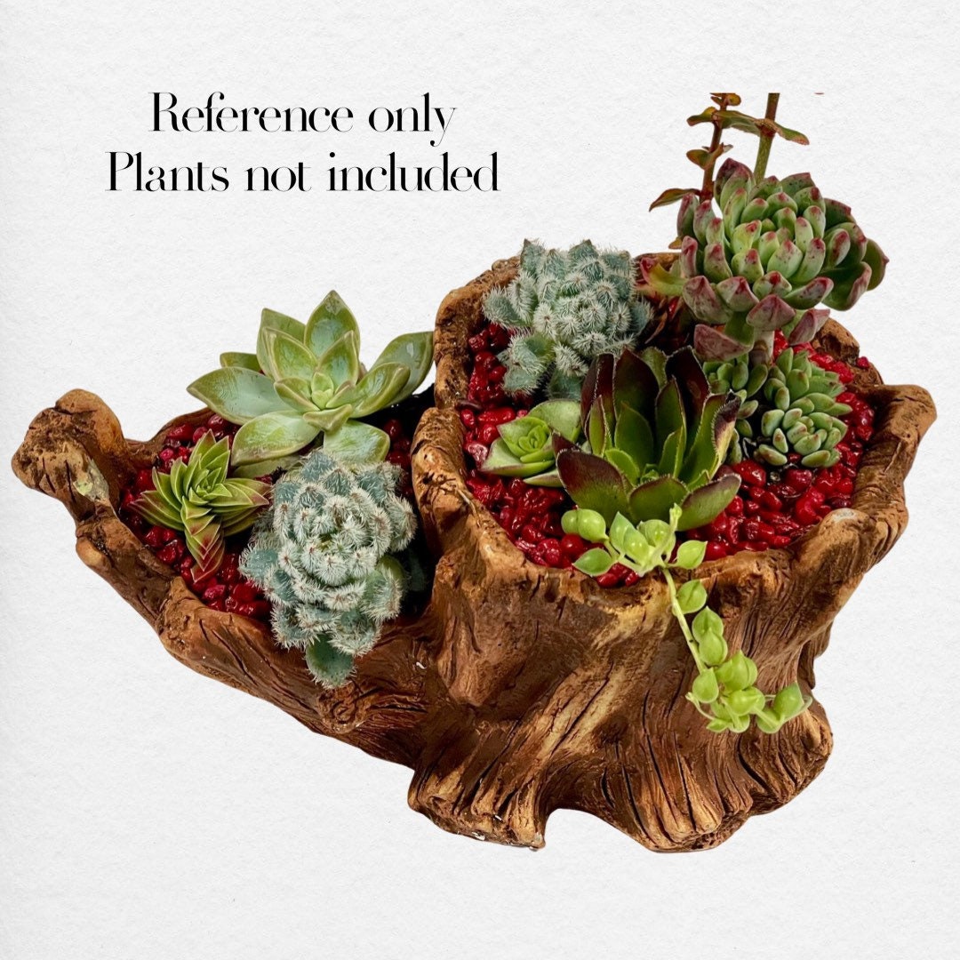 Amazon Com Hiceeden Artificial Driftwood Succulent Planter Resin Tree Stump Sculpture Rustic Cactus Flower Pot For Herb Strawberry Small Plants Natural Color Drainage Hole 14 6 L X 4 3 W X 5 1 H