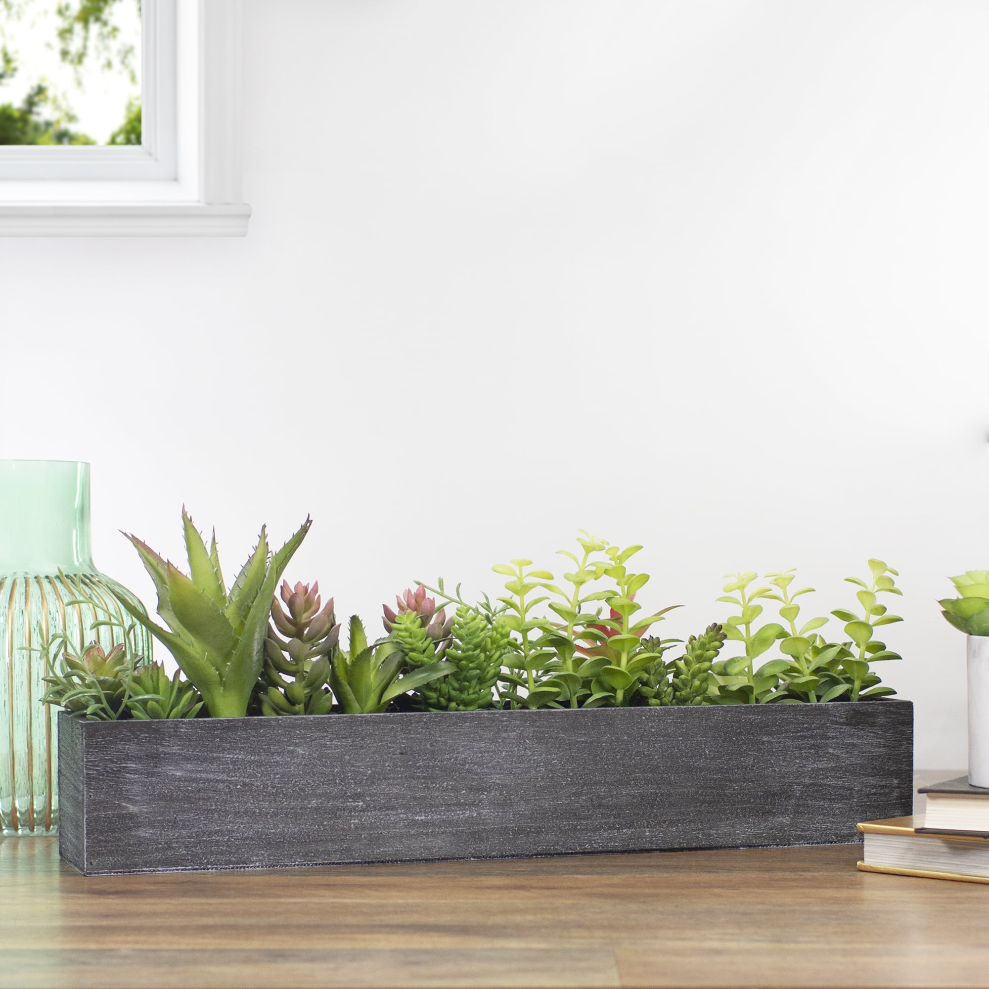 Northlight 23 Artificial Mixed Succulent Plants In A Rectangular Planter Walmart Com